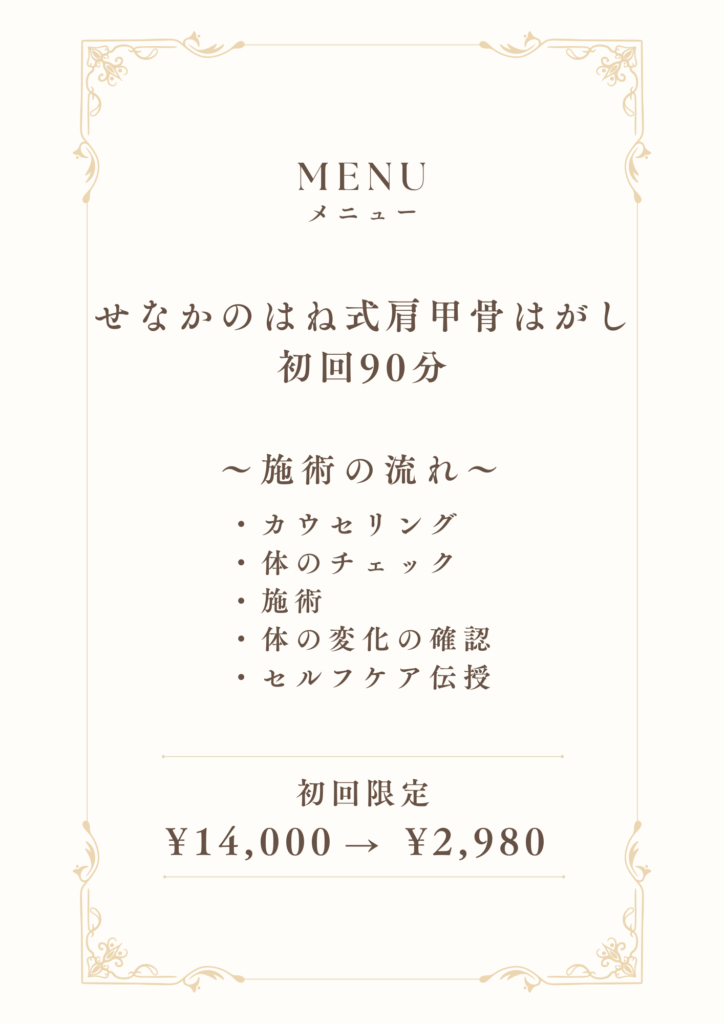せなかのはねは『大阪と博多』に展開している女性専門の整体サロンです。